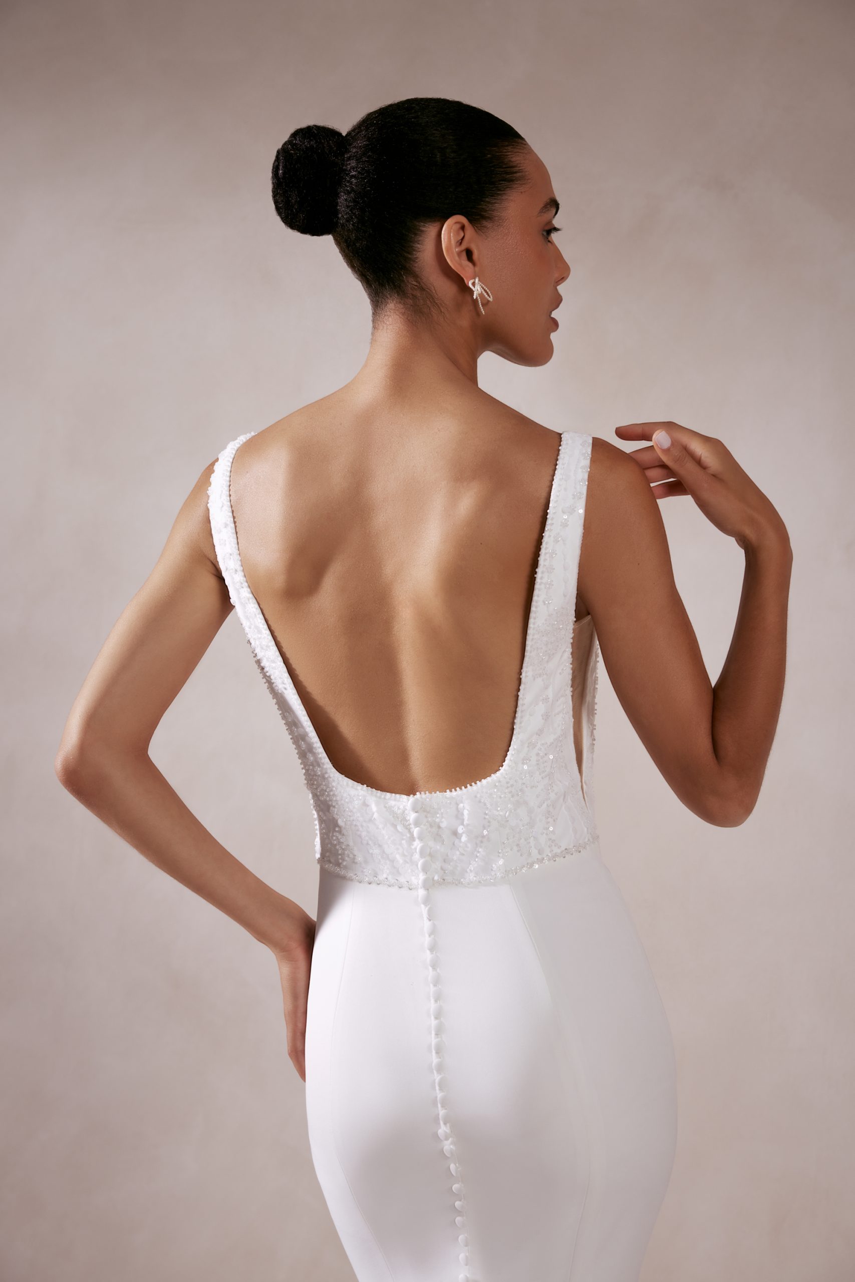 - Fabric: Stretch Crepe Jersey Beading Embroidery Sequins Tulle